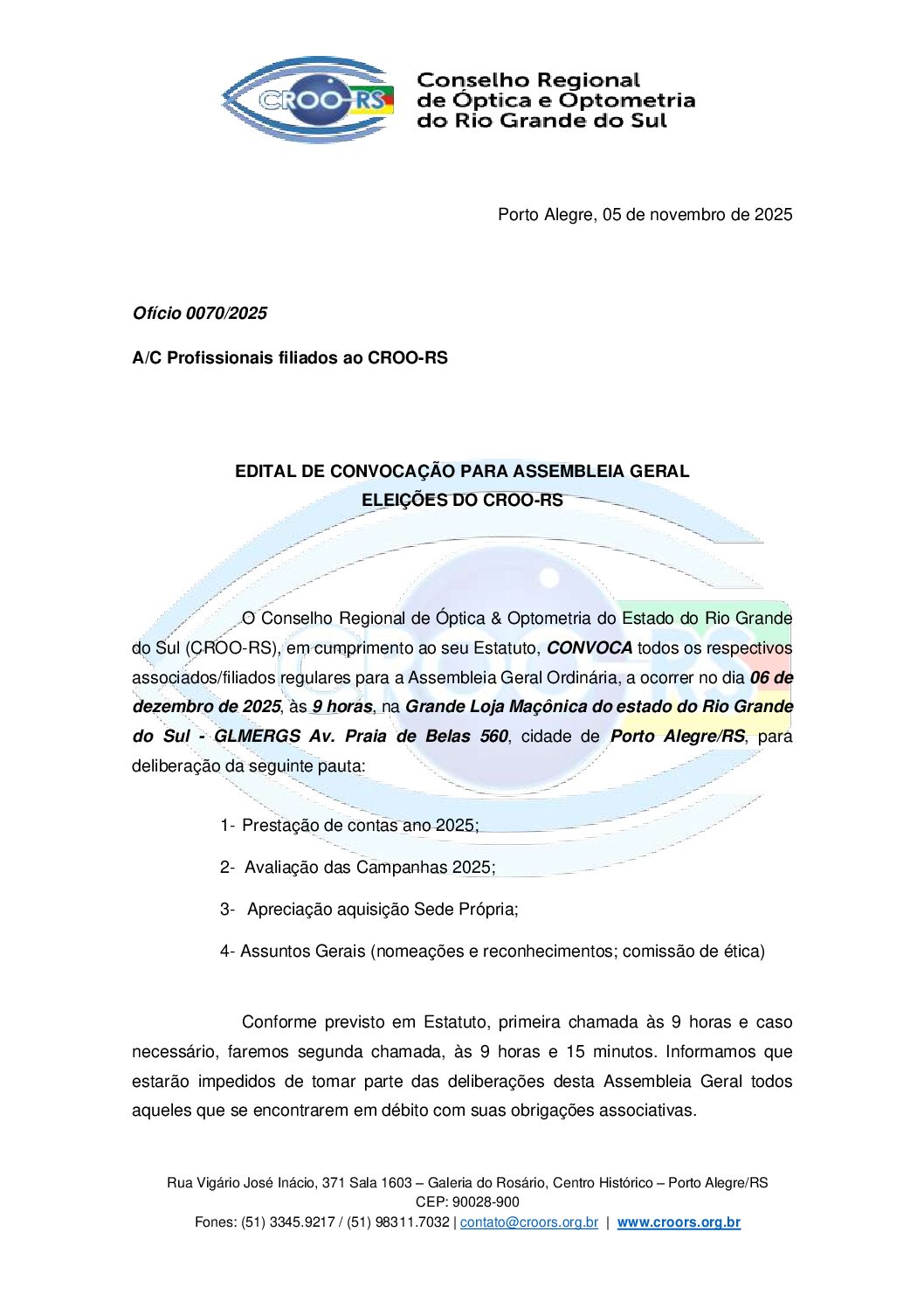 EDITAL ASSEMBLEIA GERAL ORDINARIA 2025 CROO-RS
